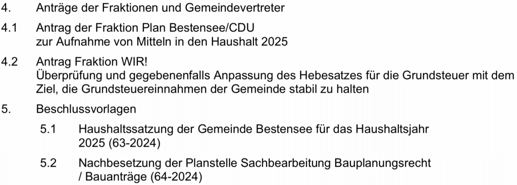 Im Folgenden erläutern wir die Entscheidungen der Fraktion Plan Bestensee/CDU.
