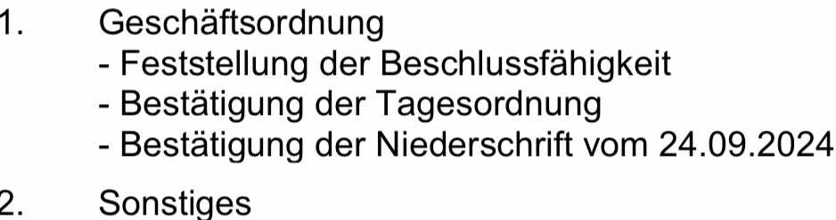 5.1 Unsere Fragen konnten kurz vorher teilweise schriftlich beantwortet werden. Dennoch liegt keine Entscheidung der Kommunalaufsicht über den Haushalt 2024 vor. Ohne diese Grundlage ist ein Haushalt 2025, aus unserer Sicht, unmöglich. Wir stimmten dagegen.